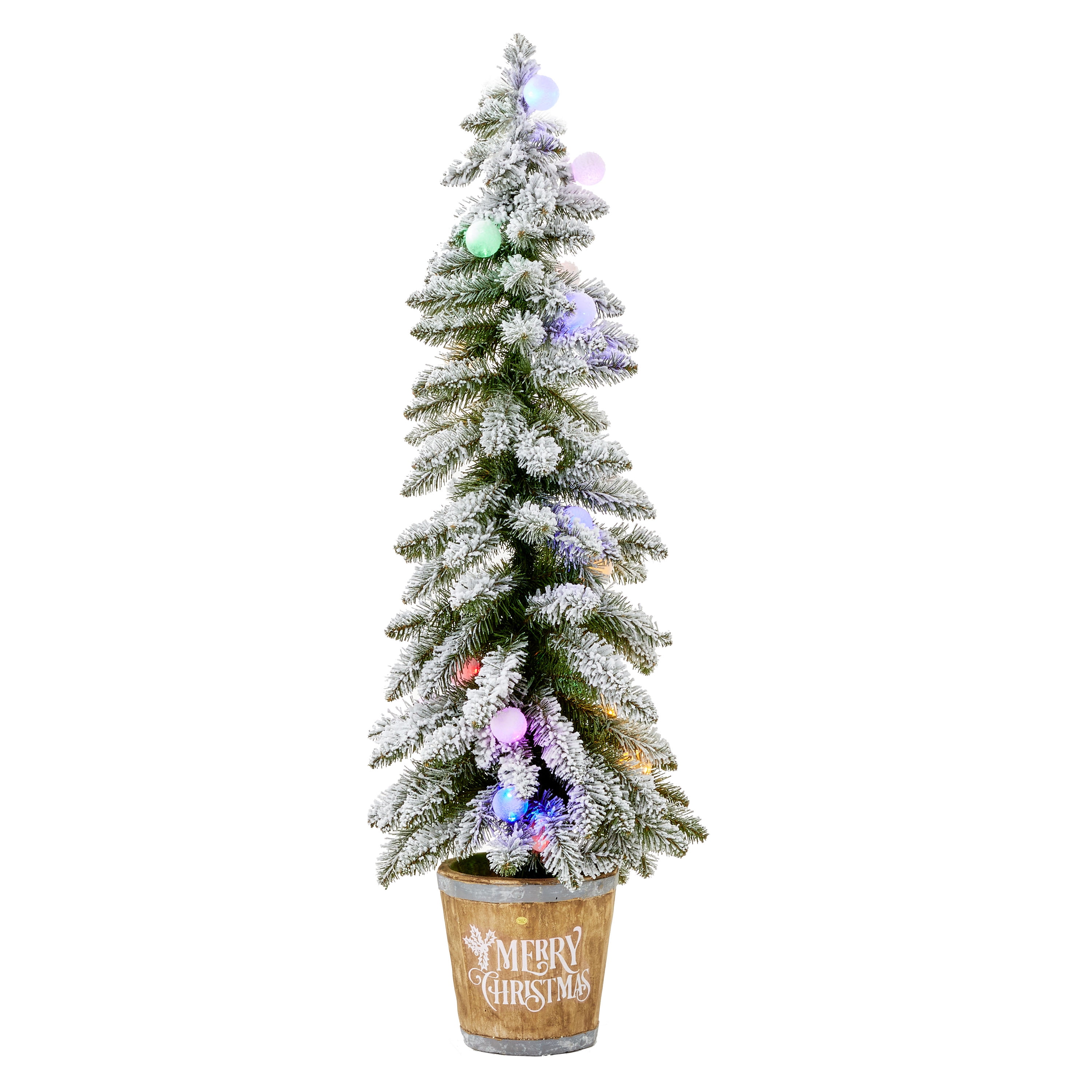 Holiday Time 4ft Pre Lit Christmas Joy Flocked Potted Tree Color Changing Led Green 4 Walmart Com
